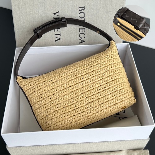 Bottega Veneta Wallace Straw Tote Raffia, Calfskin, Canvas Natural Tote Bag 보테가 베네타 월리스 라피아 토트백 라피아, 송아지가죽, 캔버스 내추럴 20x13x9.5cm |