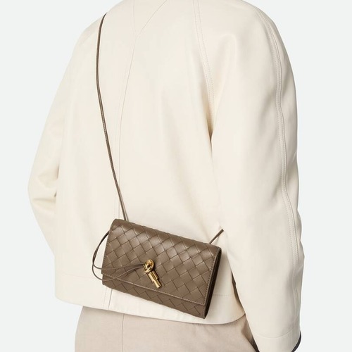 고객님께서 지금보시고 계시는 상품은 인트레치아토 위빙이 돋보이는 엔벨로프 형태의 미니 크로스백입니다. 램스킨 소재로 제작되어 부드러운 촉감과 정교한 짜임이 조화를 이루며, 전면의 메탈 로프 노트 디테일이 포인트가 되어 단정한 룩부터 격식 있는 자리까지 폭넓게 매치하시기 좋습니다. 내부는 분리된 수납 공간과 카드 슬롯 구성으로 휴대폰, 카드, 립 제품 등 데일리 소지품을 깔끔하게 정리하실 수 있습니다. 또한 탈부착 가능한 숄더 스트랩으로 크로스 착용은 물론, 스트랩을 분리해 손에 들어 클러치처럼 연출하실 수 있어 낮과 밤의 무드를 자연스럽게 전환해드립니다.