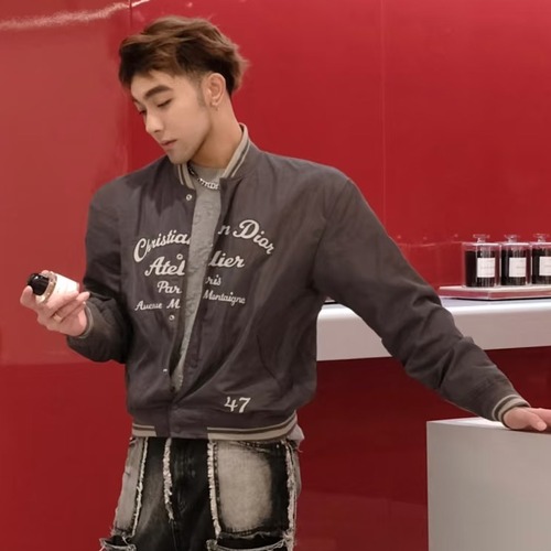 Dior CD Logo Baseball Jacket Cotton Blend Beige 디올 CD 로고 베이스볼 자켓 코튼 혼방 베이지 1