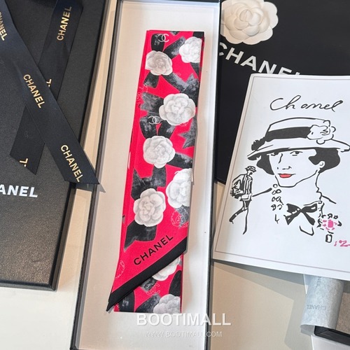 Hermes Camellia Twilly Silk Black Hair Scarf 에르메스 까멜리아 트윌리 실크 블랙 헤어 스카프 |