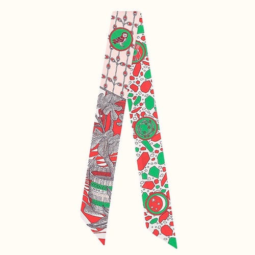 고객님께서 지금보시고 계시는 상품은 컬렉션의 여 기사들의 무도 트윌리 스카프입니다. 실크 트윌 100% 소재로 제작되어 은은한 광택과 부드러운 촉감이 돋보이며, 정교한 프린트가 선명하게 표현되는 점이 특징입니다. 신화적 서사와 현대적 무드가 결합된 그래픽이 양면으로 구성되어, 묶는 방식에 따라 서로 다른 분위기를 연출하실 수 있습니다. 목에 가볍게 둘러 포인트를 주거나 손목, 허리, 헤어 스타일링에 활용하기 좋고, 가방 핸들이나 스트랩에 감아 스타일 변주를 주기에도 알맞습니다. 슬림한 5×86cm 비율로 매듭이 깔끔하게 잡히며, 포멀한 자리부터 데일리 룩까지 폭넓게 매칭됩니다.