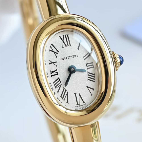 까르띠에(Cartier) 베누아르(Baignoire) 컬렉션은 브랜드를 대표하는 여성용 클래식 워치로, 우아한 타원형 케이스 디자인이 돋보이는 아이코닉한 모델입니다. 프랑스어로 ‘욕조’를 의미하는 Baignoire는 이름 그대로 욕조 형태의 부드러운 타원형 실루엣에서 영감을 받아 탄생한 디자인으로, 까르띠에 특유의 프렌치 럭셔리 감성을 상징하는 시계입니다.