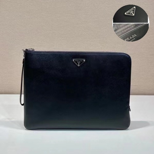 Prada Large Pouch Cross-Grain Calf Leather Black 프라다 2NH023 라지 파우치 크로스그레인 카프스킨 블랙 34cm |