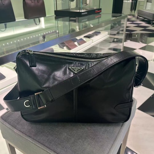 Prada Messenger Bag Oiled Wax Leather Black 프라다 2VH187 메신저백 오일드 왁스 레더 블랙 35cm |