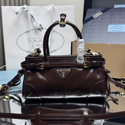 Prada Soft Lux Mini Bag Oiled Wax Leather Black Top Handle Bag 프라다 소프트 럭스 미니 백 오일드 왁스 레더 블랙 탑핸들백 23.5cm |