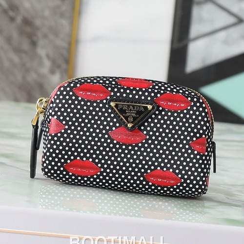 지퍼 여밈으로 구성된 레더 소재 화장품 파우치로, 유려한 라인과 에나멜 처리된 삼각형 메탈 로고 디테일이 특징입니다. 외부에는 지퍼 포켓 1개가 마련되어 소지품을 분리 수납하기 좋으며, 내부는 로고 라이닝과 지퍼 포켓 구성으로 설계되어 있습니다. 하드웨어의 소재 및 도금 방식은 상품 정보에 . 사이즈는 가로 12.5cm, 세로 8cm, 폭 4cm로 안내되어 휴대용 파우치로 활용하기 적합합니다.