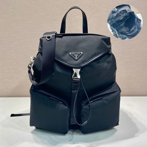 Prada Backpack Nylon, Calfskin Black 프라다 2VZ111 백팩 나일론, 카프스킨 블랙 38cm |