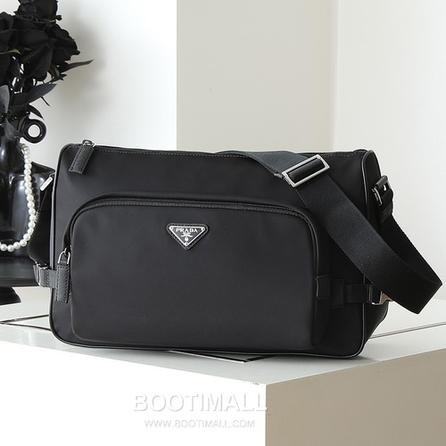 리나일론 소재 바디에 사피아노 소가죽 디테일을 더한 라지 메신저백입니다. 심플한 라인과 실용적인 현대적 디테일로 스포티한 기능성을 강조했으며, 에나멜 처리된 메탈 삼각 배지가 포인트로 적용되어 있습니다. 넉넉한 내부 용량을 갖춘 구성으로 명시되어 다양한 소지품 수납에 적합합니다. 스트랩 길이 조절, 내부 포켓 구성, 클로저 방식은 .