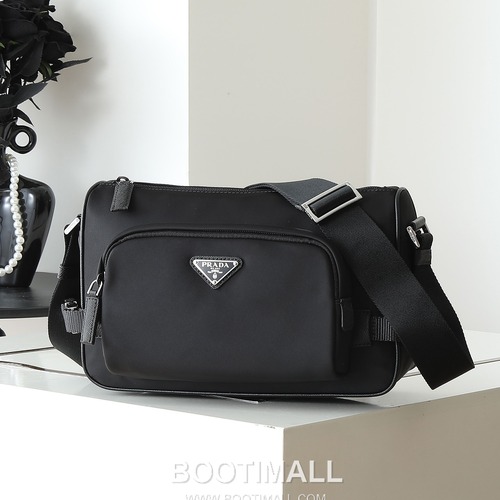Prada Messenger Bag Re-Nylon, Saffiano Leather Trim Black 프라다 2VH192 메신저백 리나일론, 사피아노 레더 트리밍 블랙 28cm |