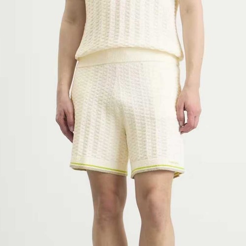 테리 코튼 소재로 제작된 쇼츠로, 순면(코튼) 원단과 배색 디자인이 명시되어 있습니다. 허리 밴딩과 드로우스트링 구조로 사이즈 조절이 가능하며, 표면에 입체적인 텍스처가 적용되어 단독 착용 시에도 포인트가 됩니다. 포켓 구성, 안감 유무, 로고 디테일은 .