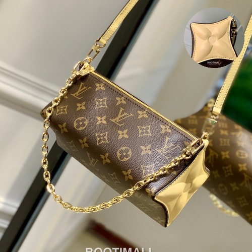 모노그램 캔버스와 측면의 가죽 패널을 조합한 파우치로, 모노그램 플라워에서 영감을 받은 디자인이 특징입니다. 22.5 x 13 x 13cm의 컴팩트한 형태로 짧은 지갑, 휴대폰, 열쇠, 립스틱 등 일상 소지품 수납에 적합합니다. 체인 스트랩은 탈부착이 가능해 다양한 방식으로 연출할 수 있으며, 둥근 실루엣으로 손에 들거나 가볍게 착용하기 좋습니다.
