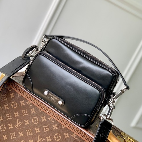 카프스킨 레더로 제작된 핸드백으로, 은은한 광택감이 특징입니다. 전면에는 비즈 장식 스터드로 고정한 파리 패치 디테일을 더했으며, 측면의 락 버클 장식이 구조적인 실루엣을 잡아줍니다. 메인 수납공간은 지퍼 여밈으로 구성되고, 지퍼 풀에는 LV 레터 장식이 포인트로 적용되었습니다.