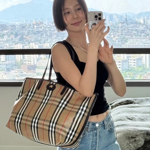 Burberry Vintage Check Canvas Hobo Vintage Check 버버리 빈티지 체크 캔버스 호보 빈티지 체크 캔버스 브라운 숄더백 26cm |