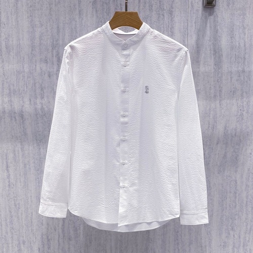 상품명 Brunello Cucinelli Seersucker Stand Collar Shirt Cotton White 시어서커 스탠드칼라 셔츠 코튼 화이트