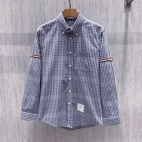 Thom Browne 2026 Early Spring Plaid Shirt Jacket Cotton Blend Grey 톰브라운 2026 얼리 스프링 체크 셔츠 자켓 코튼 블렌드 블루 |