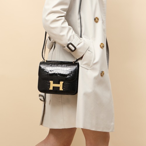 상품명 Hermes Constance 19 Shiny Crocodile Shiny American Crocodile Leather Black Shoulder Bag 에르메스 콘스탄스 19 샤이니 크로커다일 샤이니 아메리칸 크로커다일 가죽 블랙 숄더백 19cm