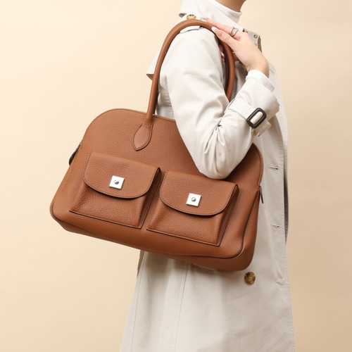 고객님께서 지금보시고 계시는 상품은 토고 송아지가죽으로 제작된 토트백입니다. 길이 43cm의 가로로 넉넉한 실루엣에 상단 핸들이 더해져 손에 들거나 어깨에 멜 수 있는 구조로 설계되었습니다. 전면에는 두 개의 더블 포켓이 배치되어 자주 사용하는 소지품을 분리 수납하기 좋으며, 본체 내부는 서류와 태블릿, 일상 소지품을 함께 담기 적합한 크기입니다. CK37 계열의 브라운과 CK89 블랙이 조합된 투톤 컬러가 사용되었고, 하드웨어는 팔라듐 도금 처리로 마감되어 가죽 컬러와 조화를 이룹니다. 출퇴근용 비즈니스 스타일은 물론 캐주얼한 데일리 룩에도 활용하기 좋은 실용적인 디자인입니다.