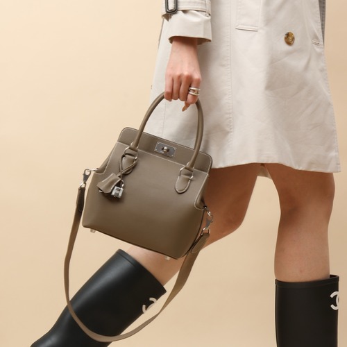 고객님께서 지금보시고 계시는 상품은 스위프트 카프스킨 소재의 버킷백입니다. 길이 20cm, 깊이 21cm, 폭 15cm의 입체적인 실루엣으로 구성되어 있으며, 부드러운 가죽과 구조적인 쉐입이 조화를 이룹니다. 상단에는 손에 쥐기 편한 핸들이 더해져 토트로 사용할 수 있고, 포함된 와이드 짜임 숄더 스트랩을 이용해 숄더 또는 크로스백으로도 활용 가능합니다. 내부에는 포켓이 있어 작은 소지품을 분리 수납하기 좋으며, 팔라듐 도금 금속 하드웨어가 전체적인 컬러와 조화를 이루어 차분한 인상을 완성합니다. 프랑스에서 제작된 제품으로, 일상적인 외출부터 가벼운 외근, 주말 나들이까지 다양한 상황에서 실용적으로 사용할 수 있는 구성이 특징입니다.