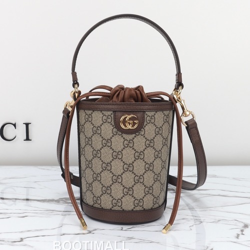Gucci GG Canvas Bucket Mini GG Canvas and Calfskin Beige Crossbody Bag 구찌 GG 캔버스 버킷 미니 GG 캔버스와 카프스킨 베이지 크로스백 20cm |