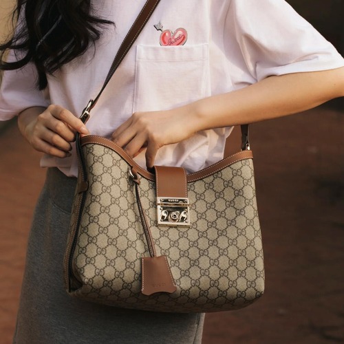 • GG 수프림 패들락 호보는 시그니처 패턴과 패드락 장식을 갖춘 숄더백입니다. • 코팅 캔버스와 가죽 트리밍으로 형태감을 유지하면서 관리가 용이합니다. • 내부는 지갑과 파우치 등 데일리 소지품을 수납하기 좋은 구조입니다. • 골드 톤 패드락과 스티치 디테일이 디자인 포인트를 더합니다. • 정품 박스, 더스트백, 구매 영수증이 포함된 풀 패키지로 제공됩니다. |