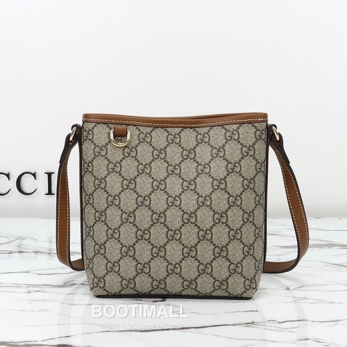 - GG 패턴 캔버스 바디와 브라운 가죽 트리밍 구성