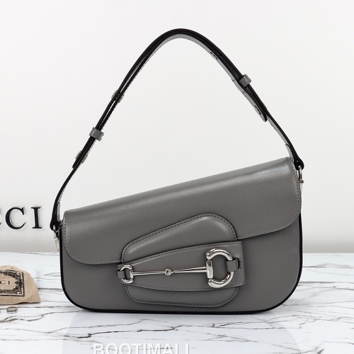 - 카프스킨 레더 소재의 그레이 컬러 클러치백