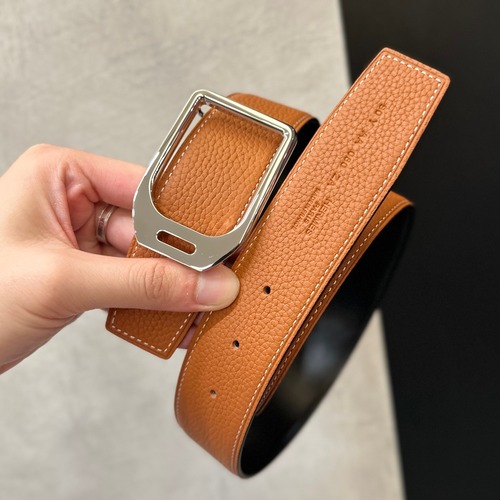 고객님께서 지금보시고 계시는 상품은 에르메스의 Jockey 버클과 38mm(3.8cm) 리버서블 레더 스트랩으로 완성한 남성 벨트입니다. 버클은 각진 사각 프레임을 매끈하게 정리한 미니멀 실루엣으로, 로고를 과하게 드러내지 않으면서도 에르메스 특유의 단정한 고급감을 전달합니다. 스트랩은 양면으로 사용할 수 있는 리버서블 구성이라 코디에 따라 분위기를 빠르게 전환할 수 있으며, 38mm 폭은 정장 팬츠부터 데님·치노까지 가장 활용도가 높은 규격으로 허리 라인을 안정적으로 잡아줍니다. 가죽은 표면 결감이 깔끔하게 살아 있는 타입이라 전체 착장이 과하지 않게 정돈되고, 메탈 버클의 고급스러운 마감이 룩의 완성도를 한 단계 끌어올려 줍니다. 비즈니스 룩과 캐주얼 룩 모두에서 자연스럽게 어울리는 시즌리스 벨트로 추천드립니다.