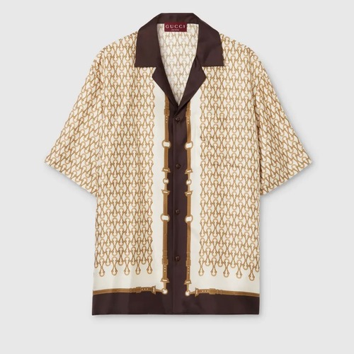 Gucci Horsebit Print Cuban Shirt Polyamide Brown 구찌 홀스빗 프린트 쿠반 셔츠 폴리아미드 브라운 |