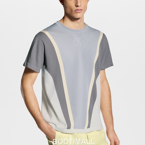 Louis Vuitton Geometric Jacquard Knit Cotton Light Blue T-Shirt 루이비통 지오메트릭 자카드 니트 코튼 라이트 블루 반팔 티셔츠 |
