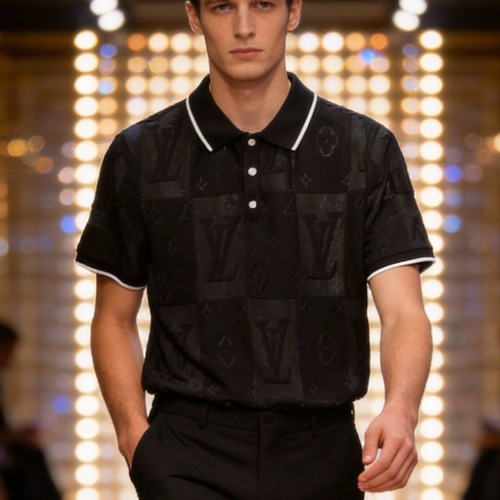 Louis Vuitton DG Jacquard Knit Polo White Polo Shirt 루이비통 DG 자카드 니트 폴로 화이트 폴로 셔츠 1