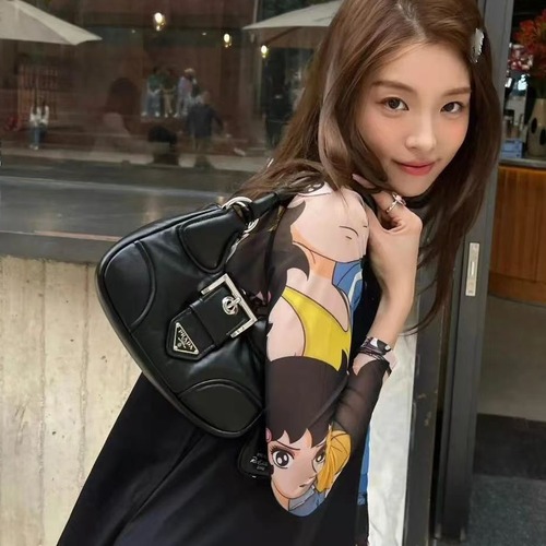 고객님께서 지금보시고 계시는 상품은 프라다의 아이코닉한 Moon 라인으로, 부드러운 램스킨 가죽을 사용하여 고급스러운 터치감과 세련된 실루엣을 동시에 갖춘 숄더백입니다.