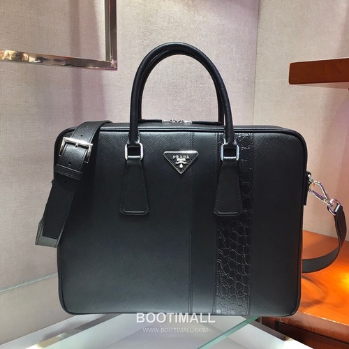 Prada Saffiano Croc Trim Briefcase Saffiano Leather with Crocodile Trim 프라다 2VE011 사피아노 크록 트림 브리프케이스 사피아노 레더 크로커다일 트림 36cm 13