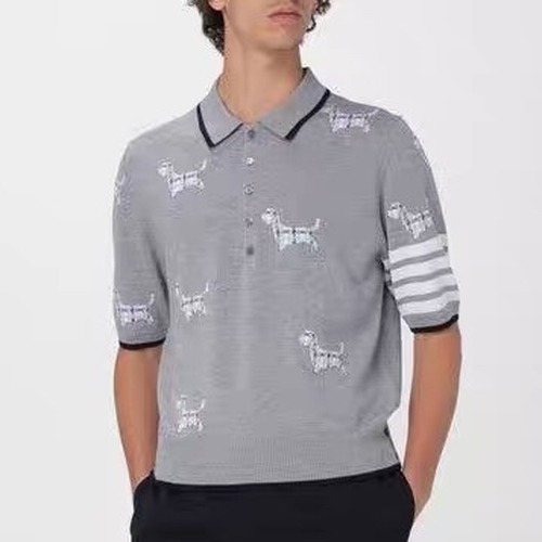 Thom Browne Jacquard Dog Collar Polo Knitted Cotton Gray Polo Shirt 톰브라운 자카드 도그 카라 폴로 니트 코튼 그레이 폴로 셔츠 69cm |