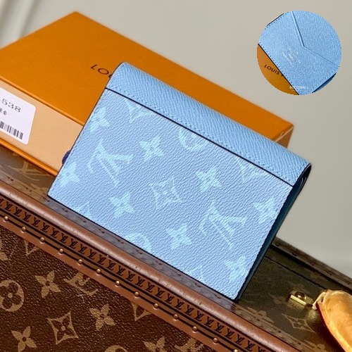 Louis Vuitton Taigarama Passport Cover Monogram Coated Canvas and Taiga Leather Blue Card Case 루이비통 타이가라마 패스포트 커버 모노그램 코티드 캔버스 레더 블루 카드케이스 14cm |
