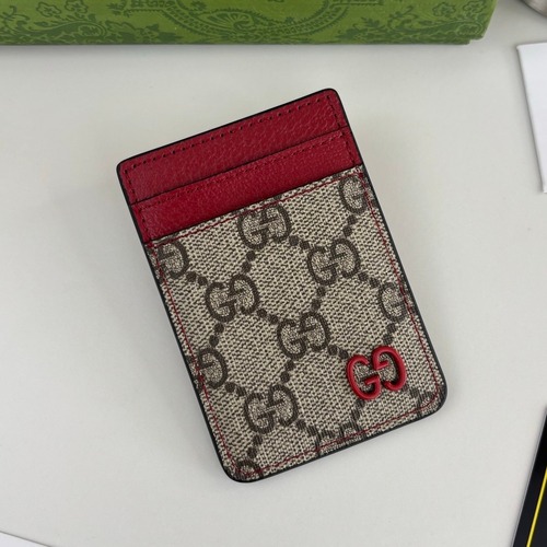 고객님께서 지금보시고 계시는 상품은 GG Supreme 코티드 캔버스로 제작된 마그넷 클로저 카드홀더입니다. 핑크와 딥브라운의 투톤 조합 위로 GG 장식이 더해져 대비감 있는 디자인을 완성합니다. 가장자리는 핑크 컬러의 글로시 가죽 트리밍으로 마감했으며, 내부에는 카드 수납을 위한 2개의 수납칸을 갖춰 간단한 소지품 정리에 적합합니다.