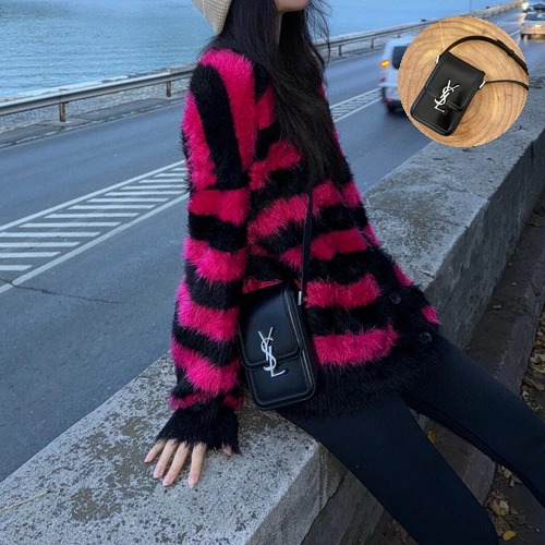 Saint Laurent Solferino Phone Box Calfskin Black Crossbody Bag 생로랑 솔페리노 폰 박스 카프스킨 블랙 크로스백 18cm |