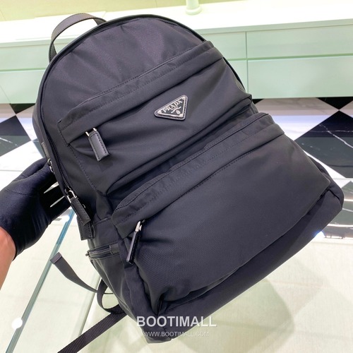 Prada Triangle Enamel Plaque Parachute Nylon Black Backpack 프라다 2VZ025 트라이앵글 에나멜 플라크 파라슈트 나일론 블랙 백팩 40cm |