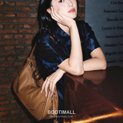 고객님께서 지금보시고 계시는 상품은 디어스킨 소재로 제작된 호보백입니다. 불규칙한 결감이 살아있는 가죽 텍스처와 호보 실루엣이 특징이며, 모서리 보강 디테일로 형태감을 잡아줍니다. 올레더 핸들과 전면 엠보 레터링 로고가 포인트가 되며, 내부는 넉넉한 수납을 위한 더블 컴파트먼트 구조로 구성되어 실사용에 편리합니다.