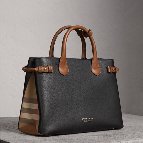 상품명 Burberry The Banner House Check Cotton Canvas, Grained Calfskin Tote Bag 버버리 더 배너 하우스 체크 코튼 캔버스, 그레인드 카프스킨 토트백 34cm