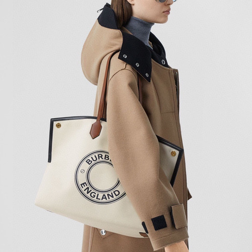 Burberry Society Logo Print Cotton Canvas Beige Tote Bag 버버리 소사이어티 로고 프린트 코튼 캔버스 베이지 토트백 38cm |