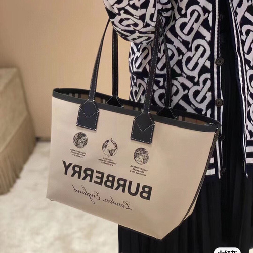 Burberry Reversible Print Check Coated Canvas Beige Tote Bag 버버리 리버서블 프린트 체크 코팅 캔버스 베이지 토트백 51cm |