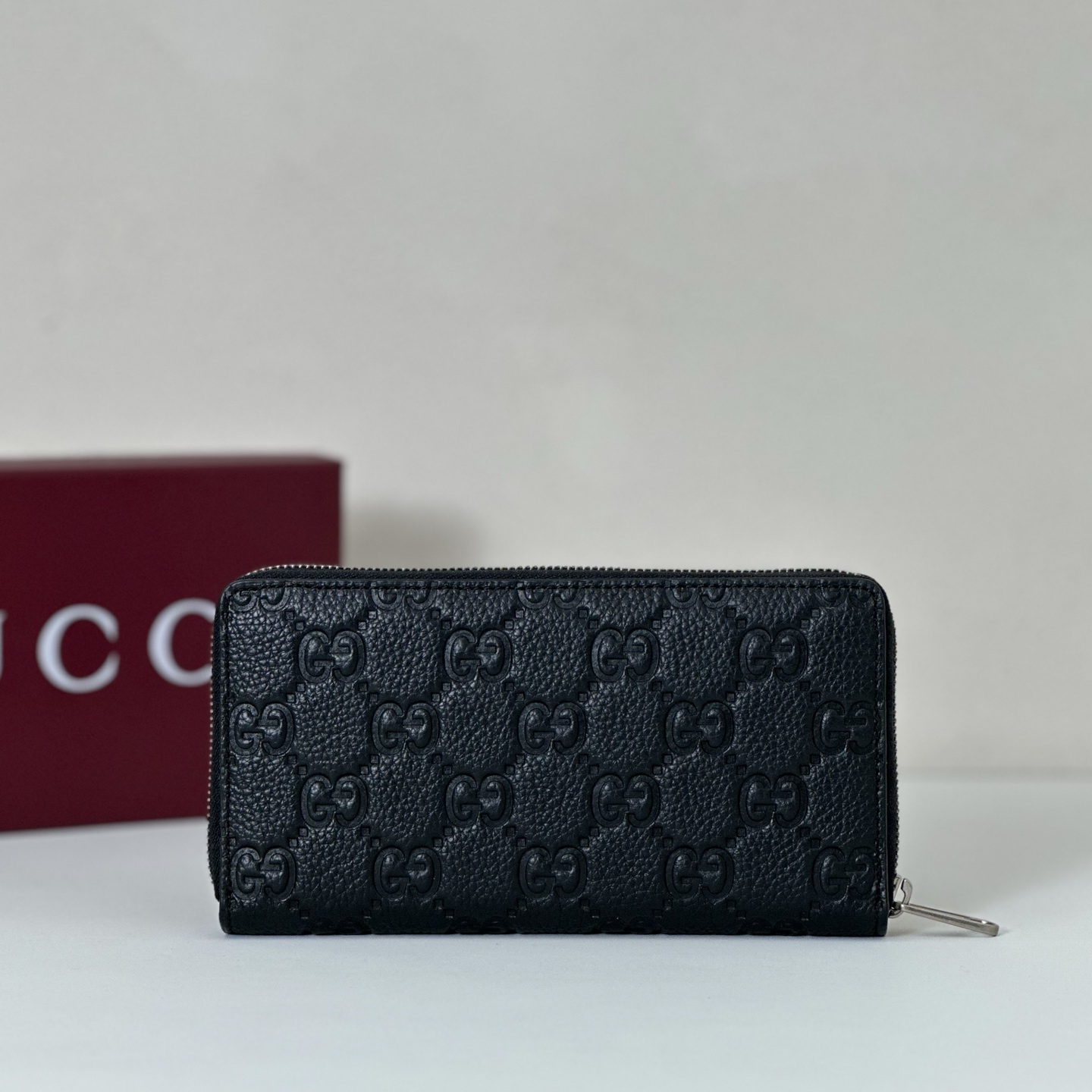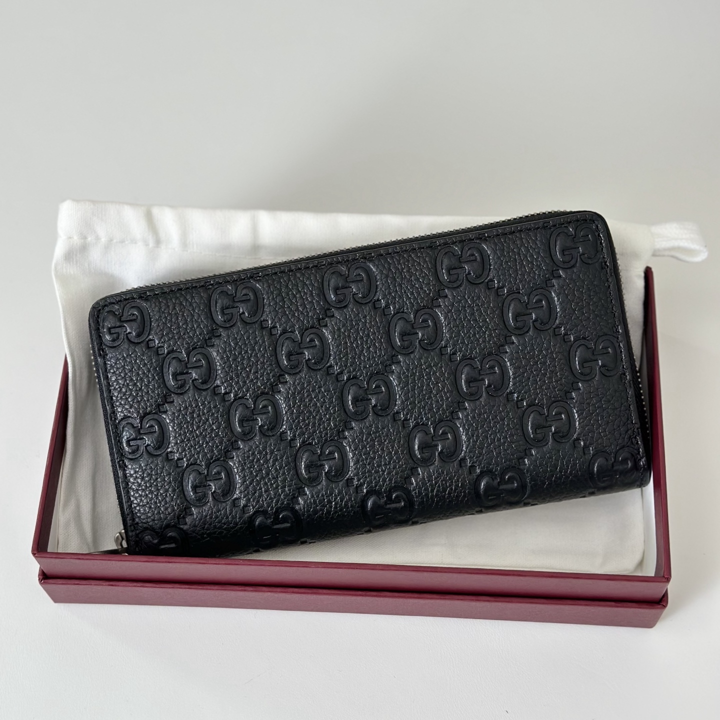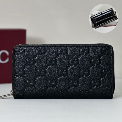 Gucci Embossed G Zip Around Grained Leather Black Long Wallet 구찌 엠보싱 G 지퍼 어라운드 그레인 레더 블랙 장지갑 19cm |