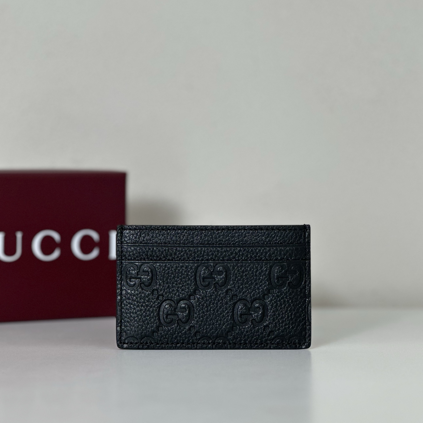 Gucci Grain-Embossed G Card Case Leather Black Holder 구찌 그레인 엠보스드 G 카드 케이스 가죽 블랙 11cm |