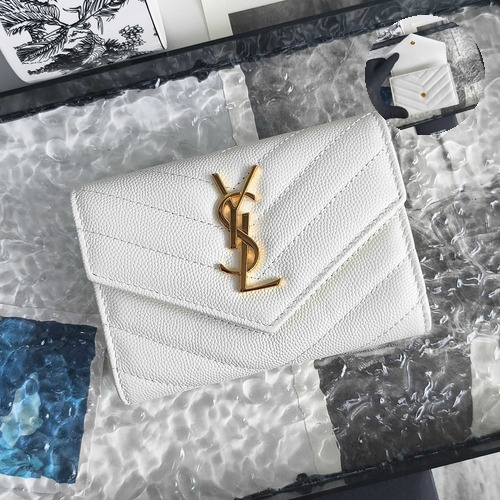 Saint Laurent Cassandre Grain de Poudre Leather Bifold Wallet 414404 생로랑 카산드르 그레인 드 푸드르 송아지가죽 반지갑 13cm