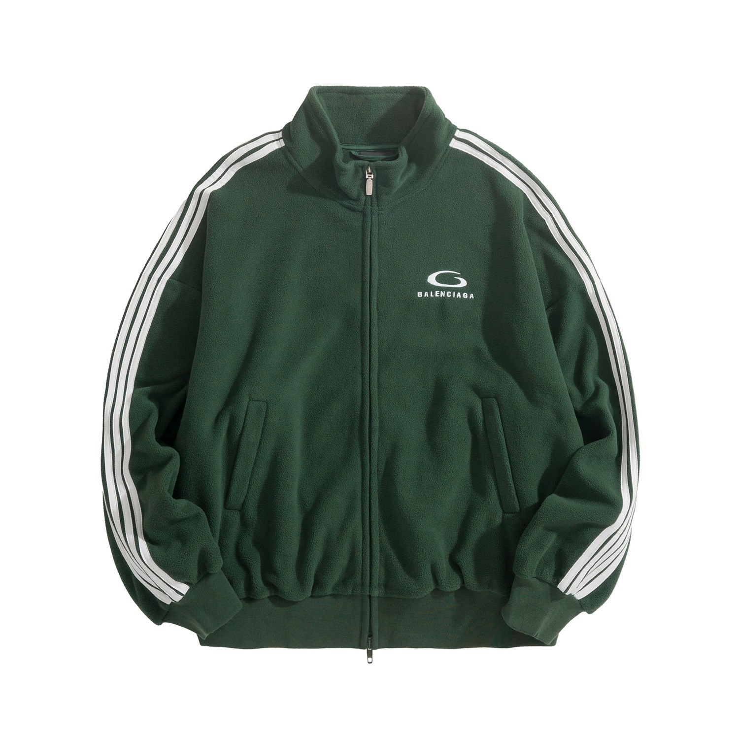 • 2025 F/W 시즌 발렌시아가 스웨이드 재킷입니다. • 스웨이드 소재로 고급스러운 질감을 제공합니다. • 더블 지퍼와 자수 그래픽 디테일이 특징입니다. • 루즈핏 실루엣으로 편안한 착용이 가능합니다. • 미디 기장의 캐주얼 아우터입니다. • 구성품은 본품입니다.