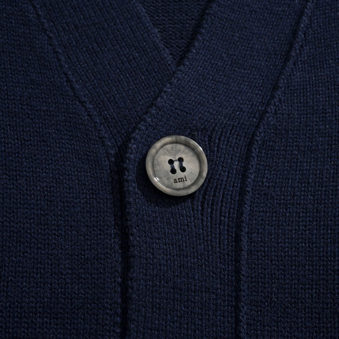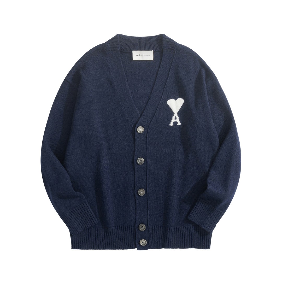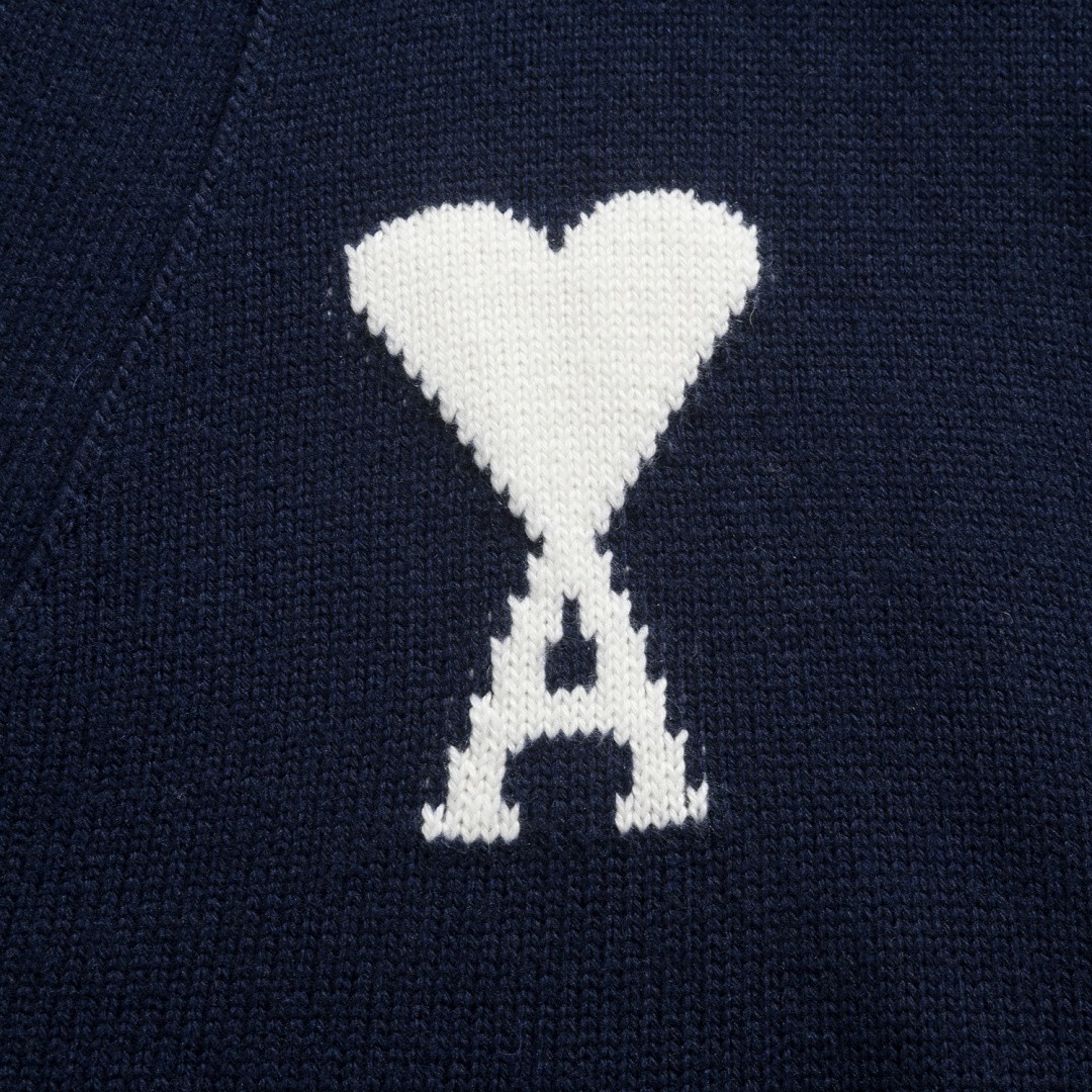 Ami Paris Heart Logo V-Neck Cardigan 아미 파리 하트 로고 브이넥 가디건 |