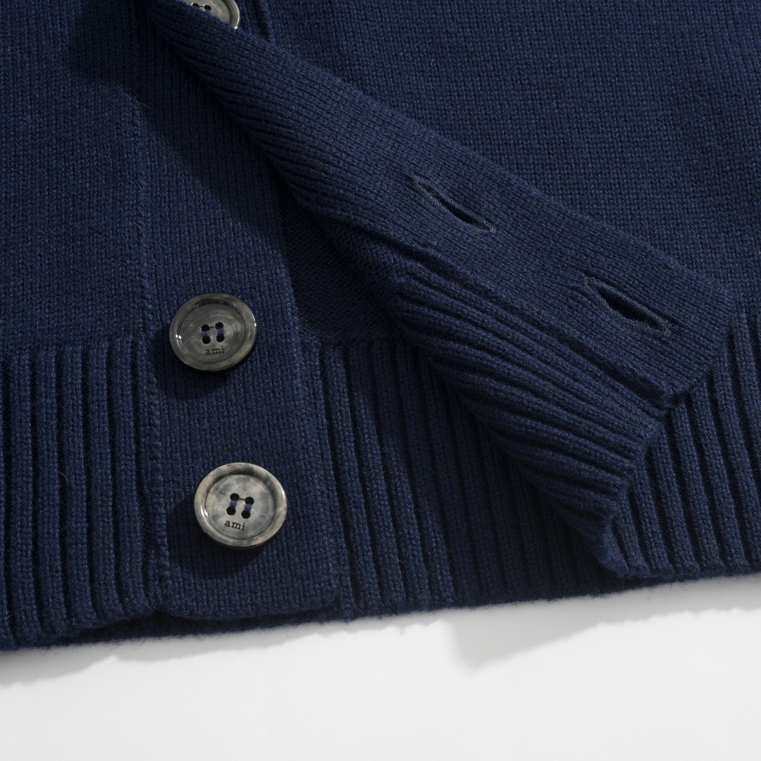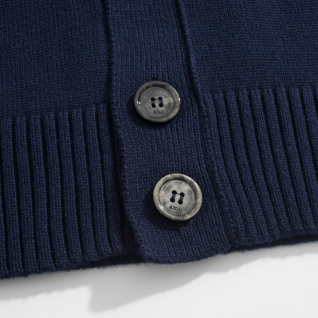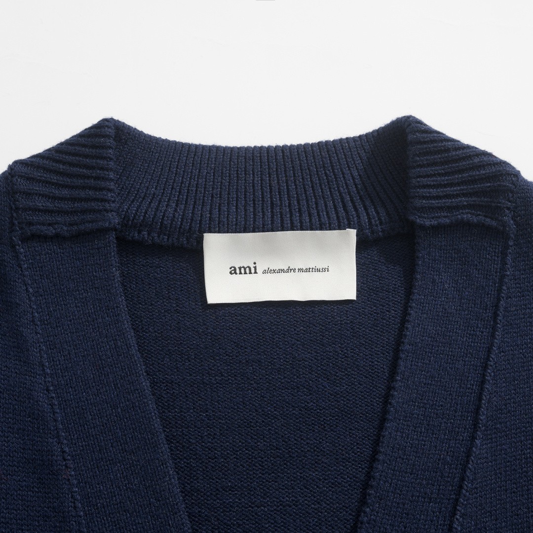 Ami Paris Heart Logo V-Neck Cardigan 아미 파리 하트 로고 브이넥 가디건 |