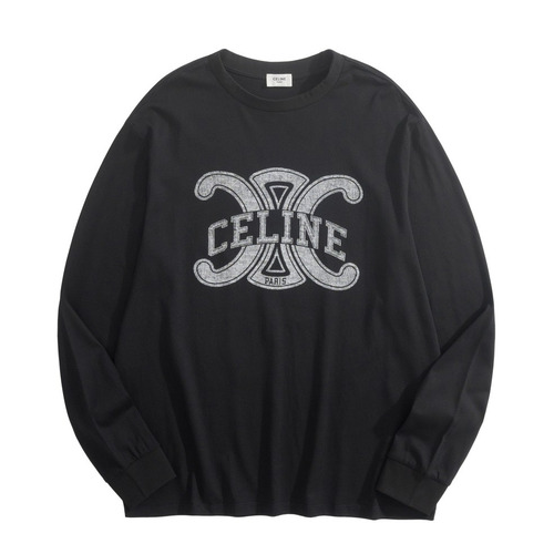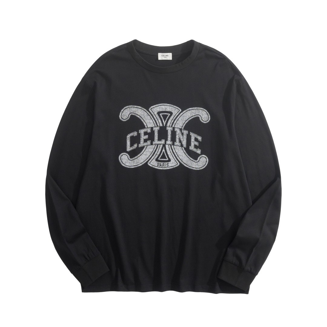 Celine Triomphe Print Long-Sleeve Long-Staple Cotton T-Shirt 셀린느 트리옹프 프린트 롱슬리브 장섬유 코튼 티셔츠 |