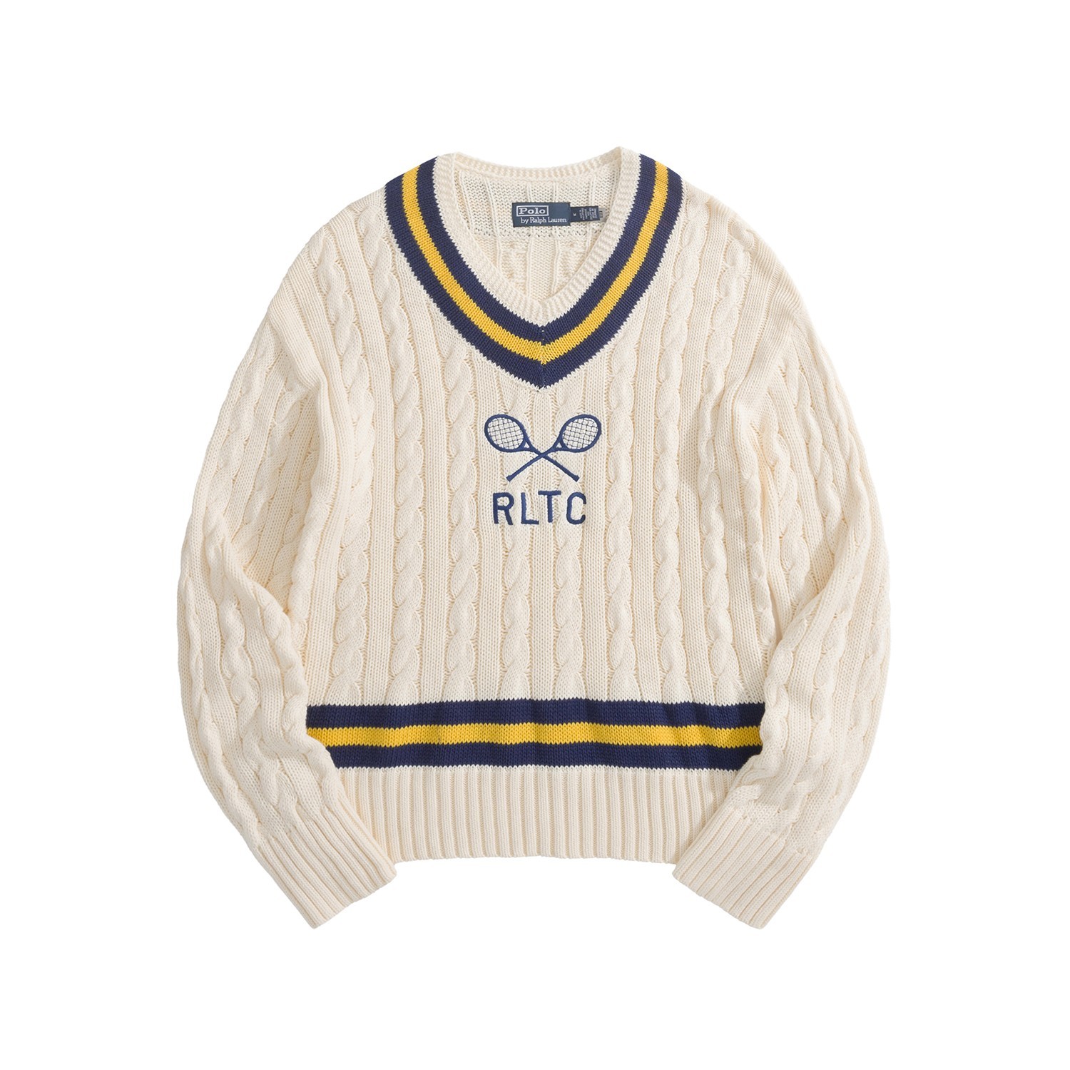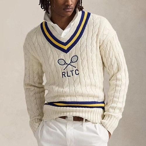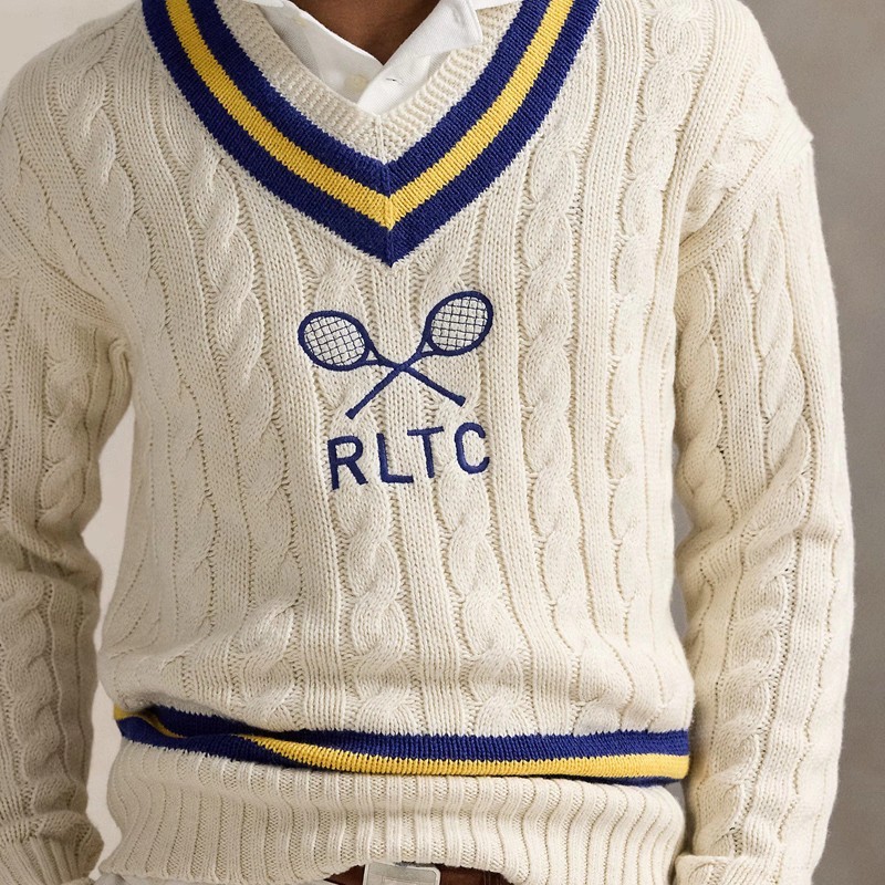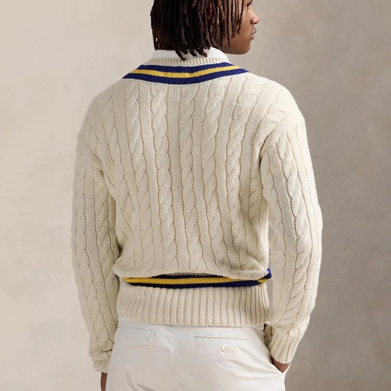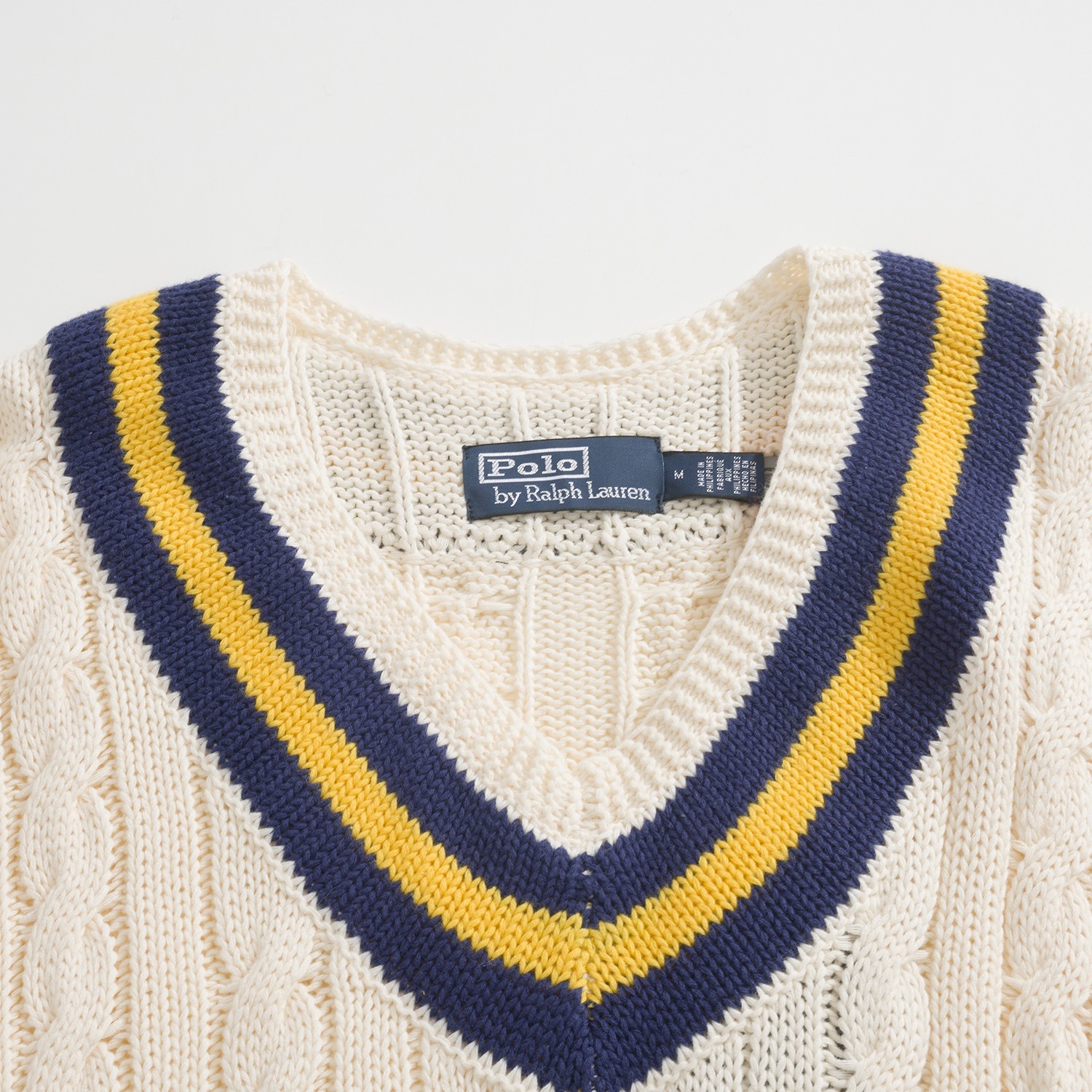 Ralph Lauren Tennis Cable-Knit V-Neck Wool Cream Sweater 랄프 로렌 테니스 케이블 니트 브이넥 울 크림 스웨터