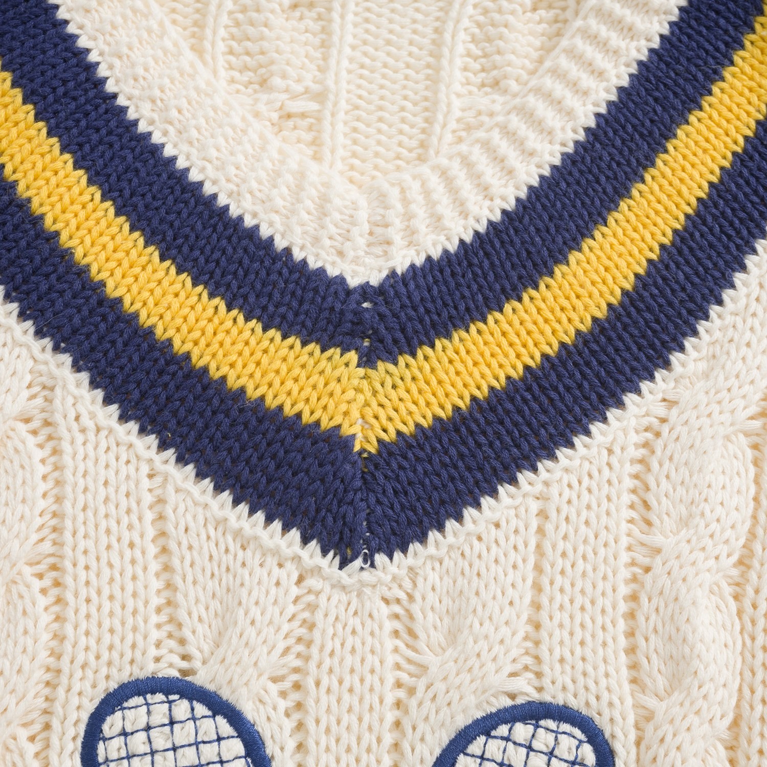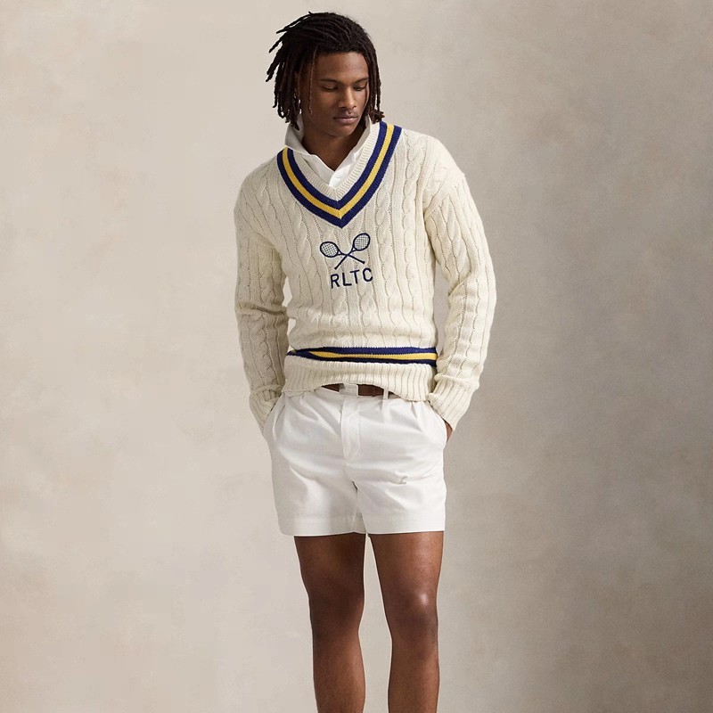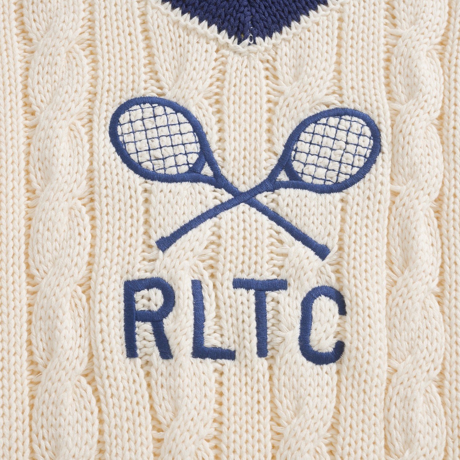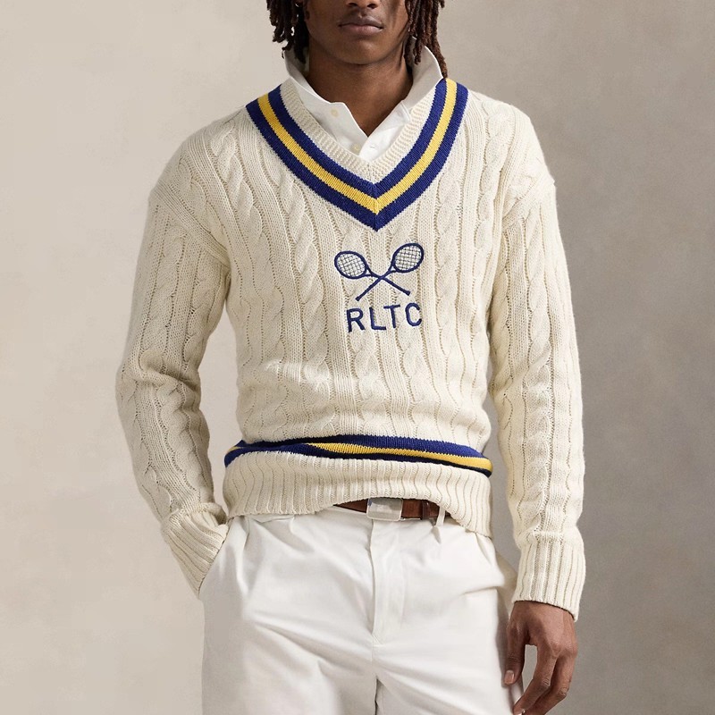 Ralph Lauren Tennis Cable-Knit V-Neck Wool Cream Sweater 랄프 로렌 테니스 케이블 니트 브이넥 울 크림 스웨터